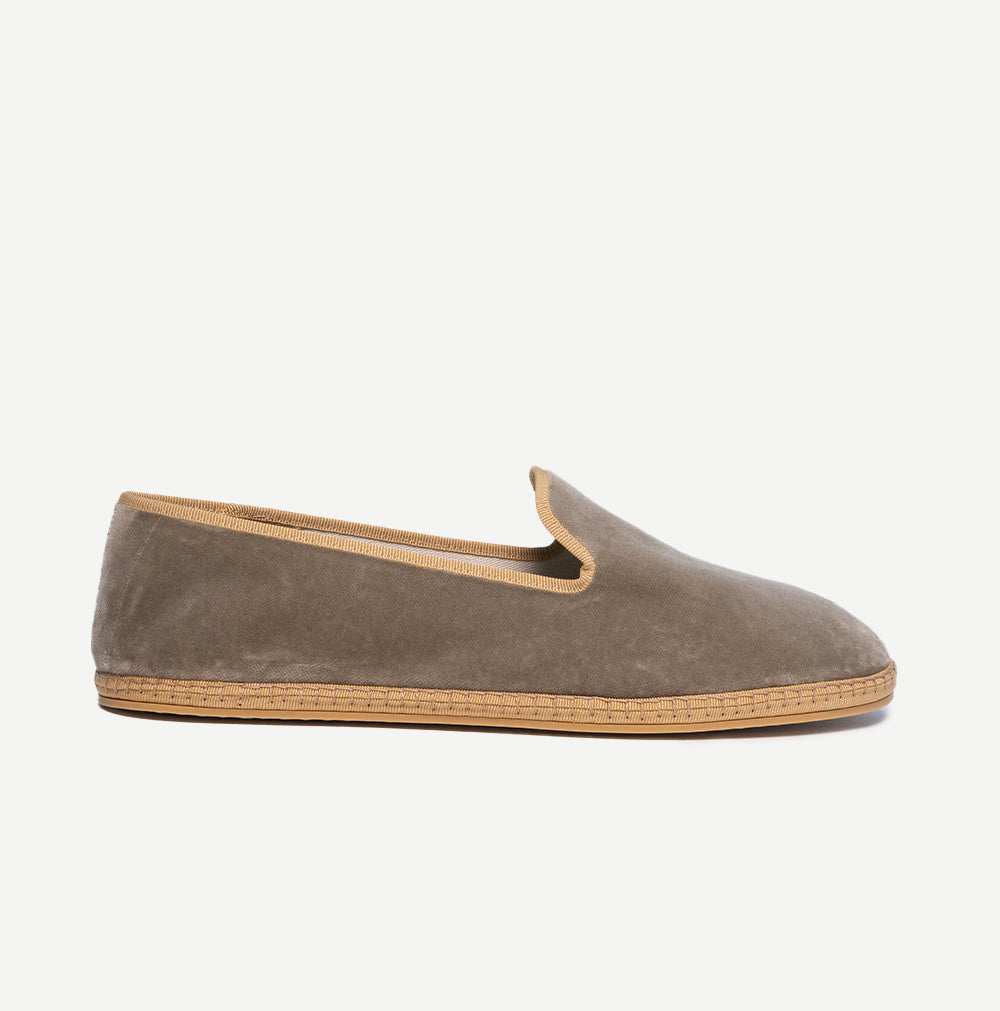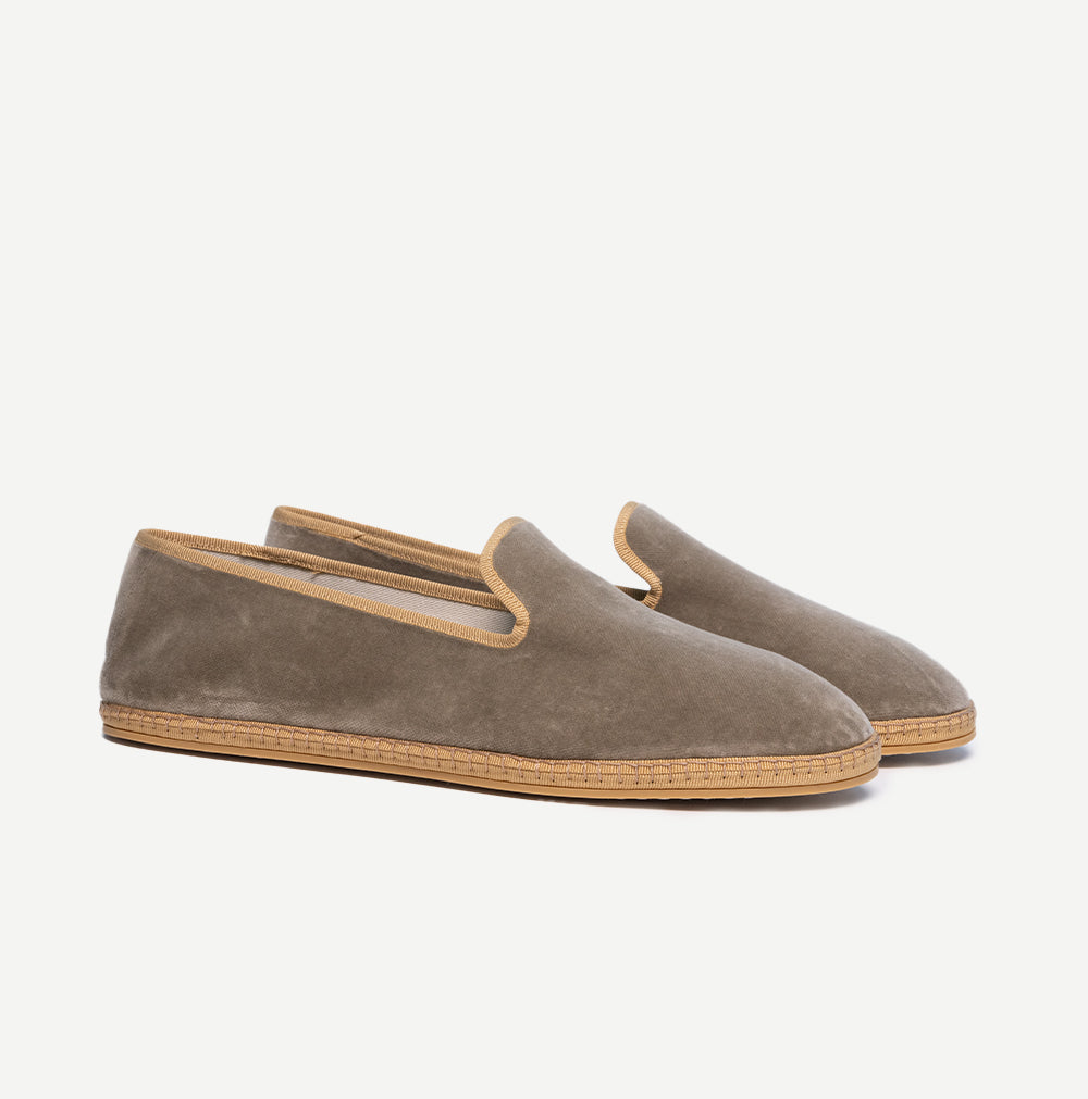 Expertly crafted to reflect the tranquil colors of the idyllic Lake Garda region, the Grigio di Garda, Gondolieri feature a subtle, refined grey velvet material that mirrors the calming tones of the lake's winding paths and ancient towns. Accented with a rich tan border and durable gum sole, these shoes capture the essence of Italian history, culture, and natural landscape in a single design.