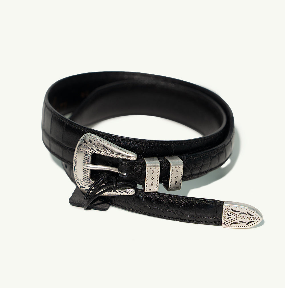 Norcia Belt is crafted in deep black leather, its refined texture echoing the stone streets and enduring architecture of Norcia, a place where tradition, craftsmanship, and resilience shape everyday life.