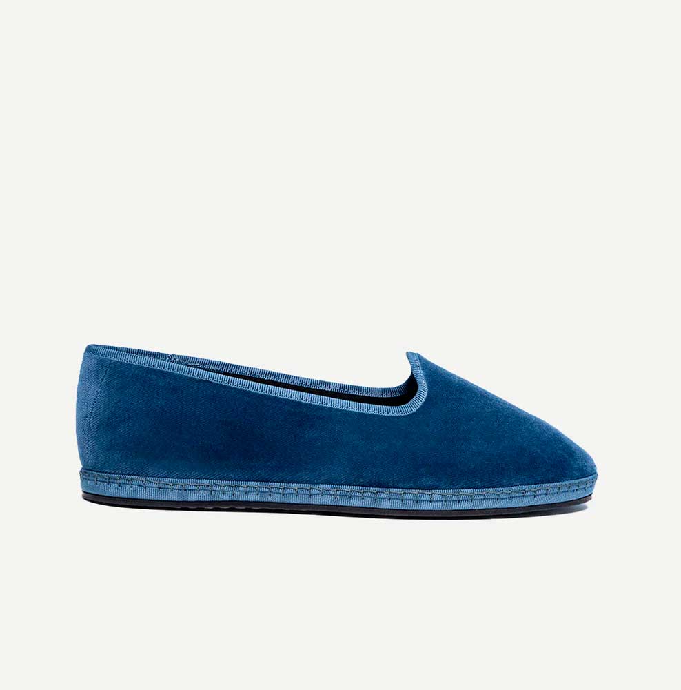 Oceano Blu Gondolieri by Brigati, a masterpiece of dark turquoise blue velvet embodying uncompromising class and comfort. Inspired by coastal elegance, these handmade friulane blend breathable craftsmanship with timeless sophistication, ensuring every step is as refined as the surroundings they evoke.