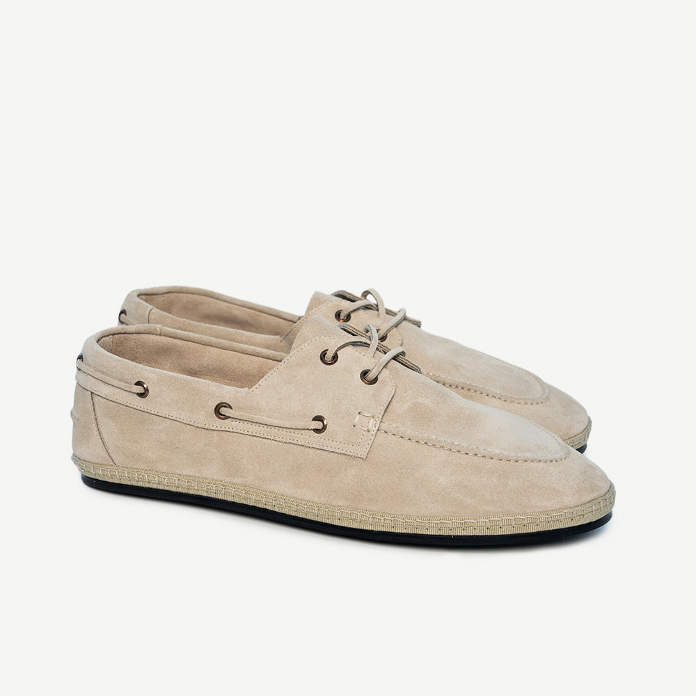 Inspired by the iridescent glow of seashells scattered on the shores of Capri, this soft ivory tone exudes understated luxury. The suede's smooth texture and clean lines mirror the elegance of a sail gliding through calm waters. Handcrafted in a small, family-run factory in Friuli-Venezia, the Veliero Collection captures the spirit of maritime elegance and Italian heritage.
