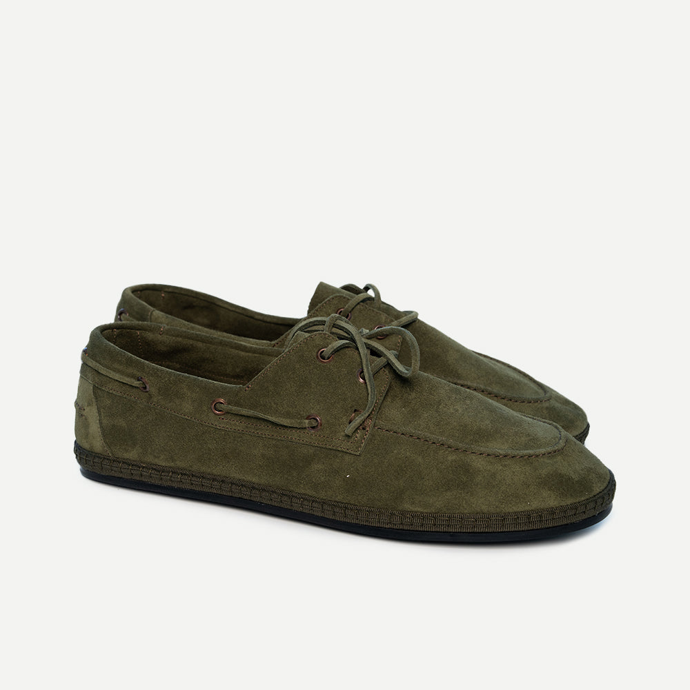 Taking inspiration from the verdant olive trees that overlook the Ligurian Sea, this rich green shade pays tribute to the idyllic Italian countryside. The supple, velvety suede embodies the tranquility of secretive groves and the sunlit trails that weave through them. Handmade in a quaint, family-owned workshop in Friuli-Venezia, the Veliero Collection embodies the essence of nautical sophistication and Italian legacy.